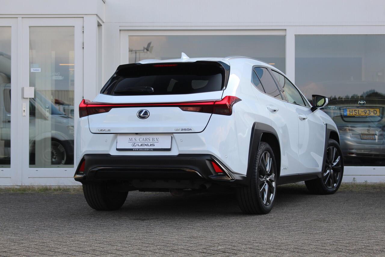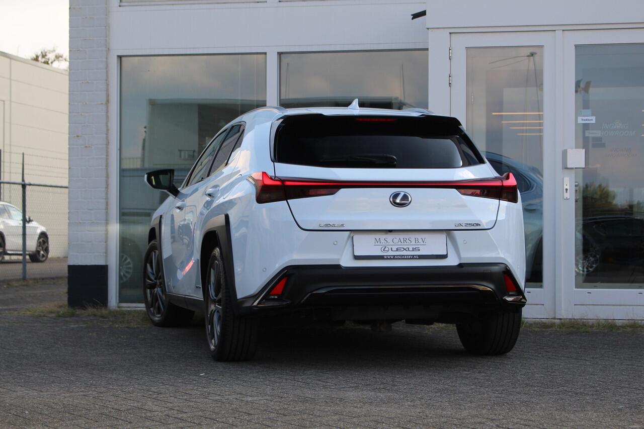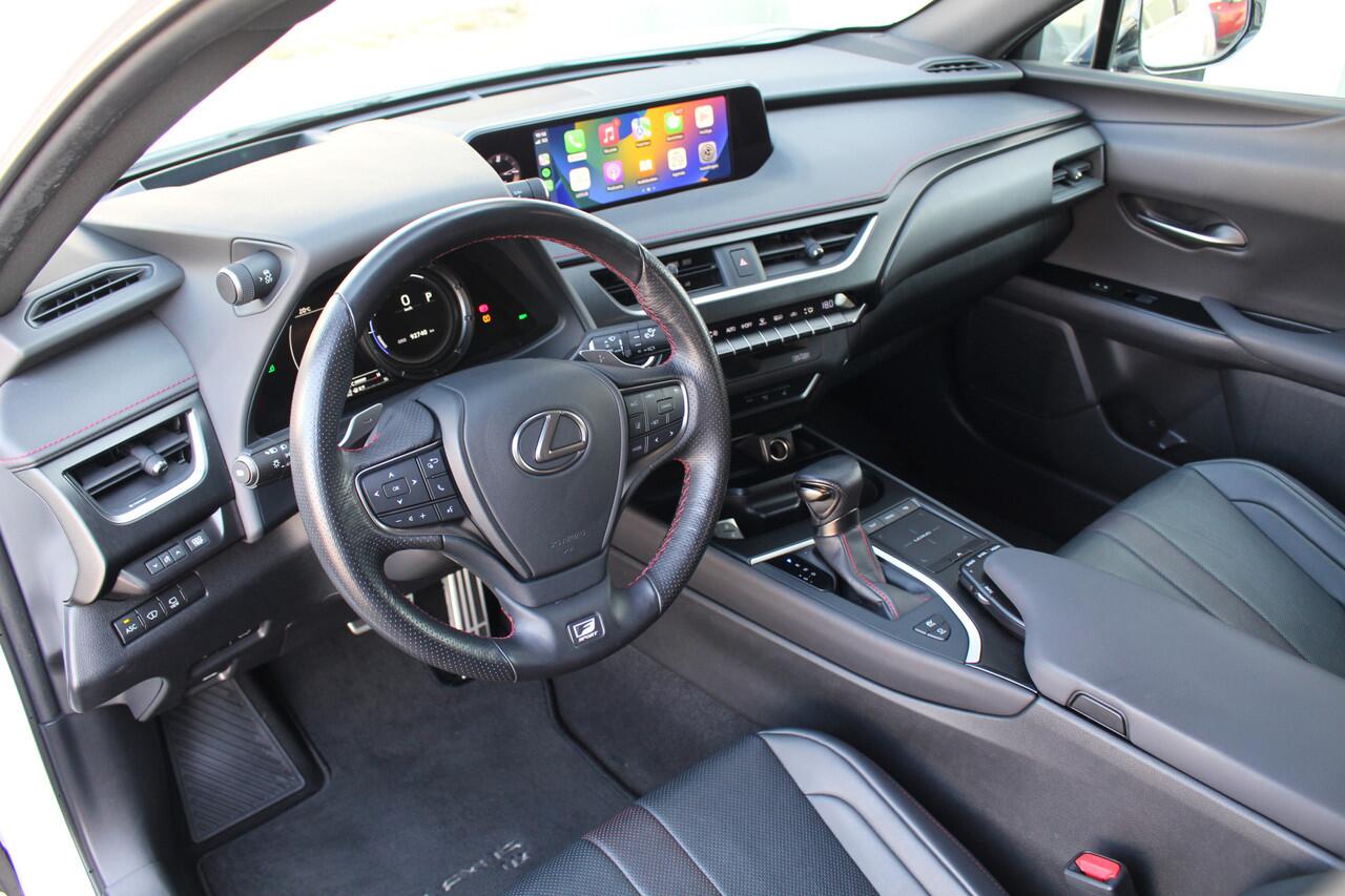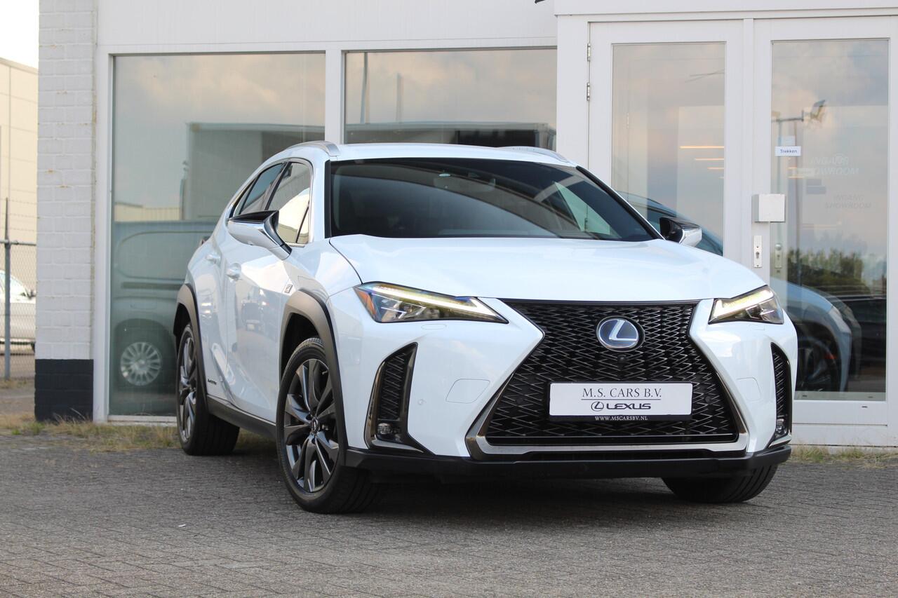 Zeer nette en luxueuze Lexus UX250h Hybride in de F-Sport Premium uitvoering van het bouwjaar 2020 met 92.740 aantoonbare kilometers. Deze Lexus-dealeronderhouden UX250h is uitgerust in de kleur Ultra White Metallic met zwart Smooth leder bekleding en rode stiksels verwerkt in het interieur. Dit betreft de F-Sport Premium uitvoering vanwege zijn vele luxe opties o.a. Mark Levinson Audio