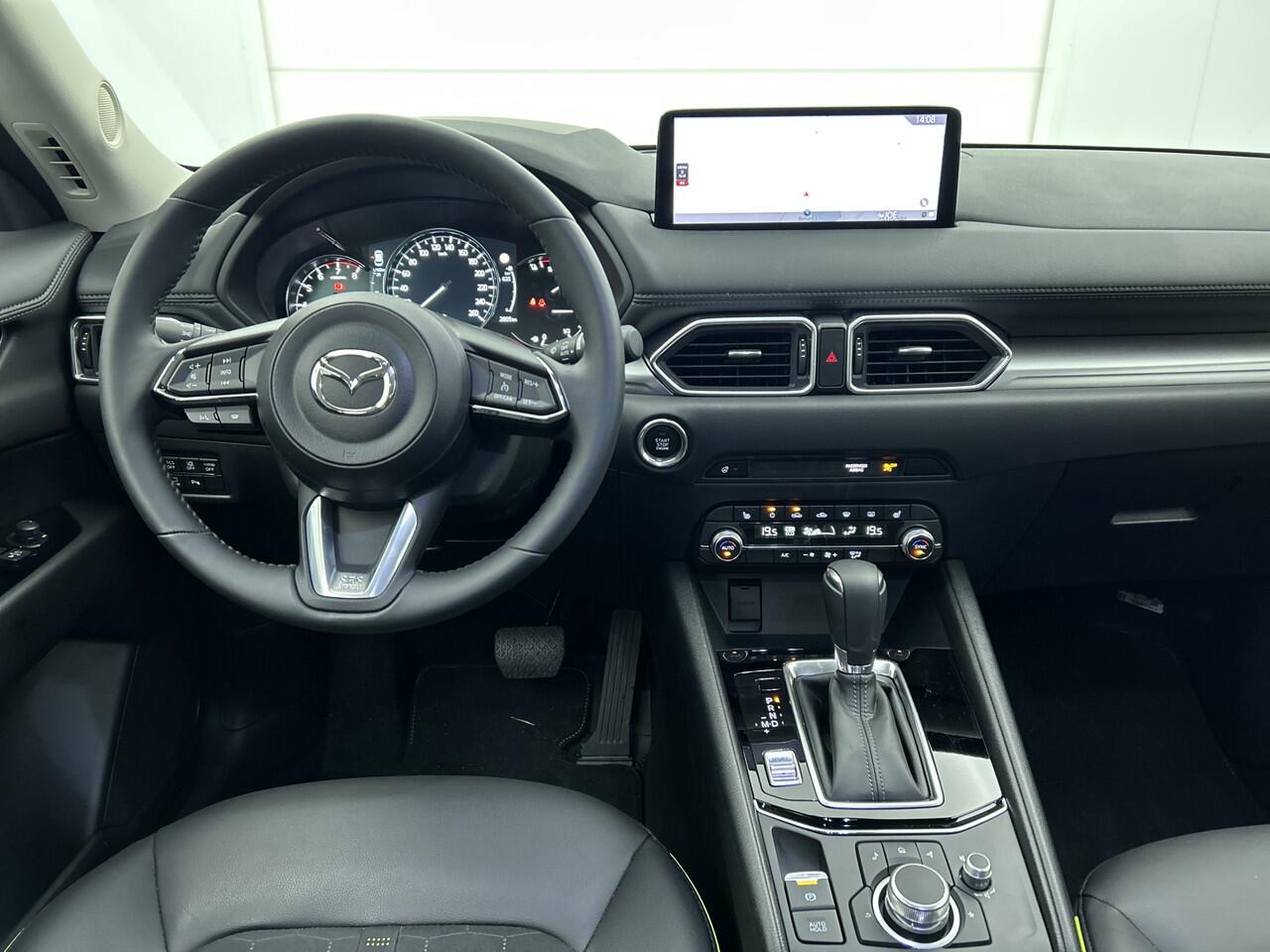 is deze Mazda CX-5 voorzien van een achteropkomend verkeer waarschuwing die registreert wanneer de afstand tot je achterligger te krap is. Ook electronic climate control