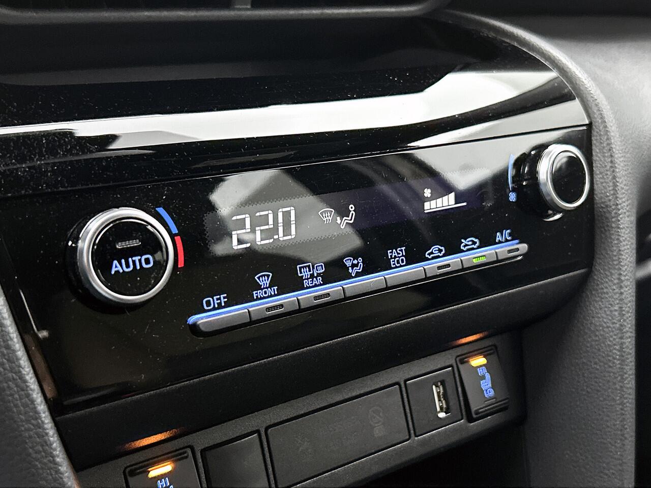 en het full map navigatiesysteem bedien jij vanaf het stuurwiel. De uitrusting van deze Toyota is met automatische airconditioning