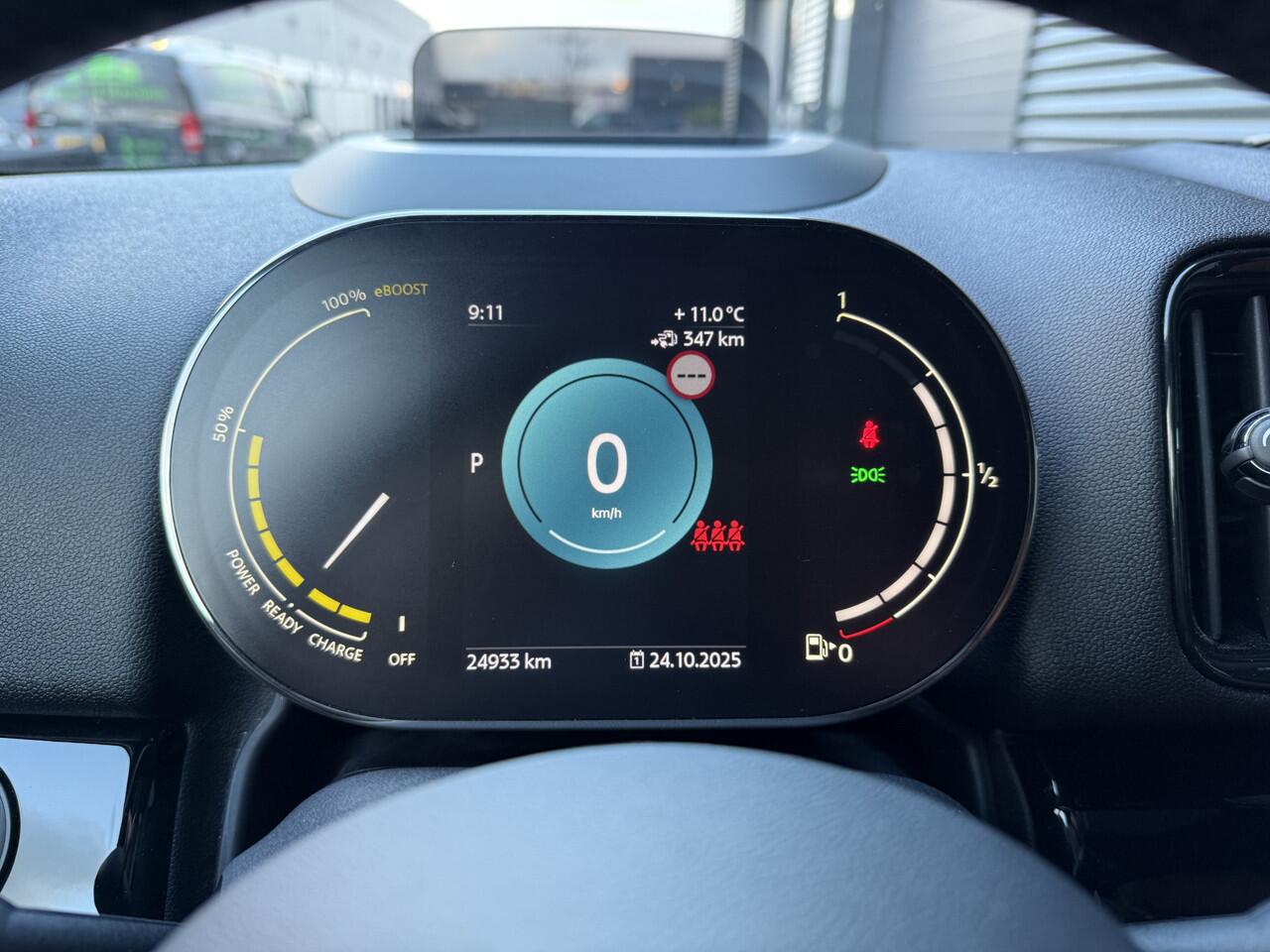Schitterende Mini Countryman 2.0 Cooper SE ALL4 Plug in Hybrid in Sage Green metallic met 18 inch hoogglans zwarte licht metalen velgen. Deze Mini is bijzonder compleet uitgerust met onder andere de volgende opties: Panorama dak