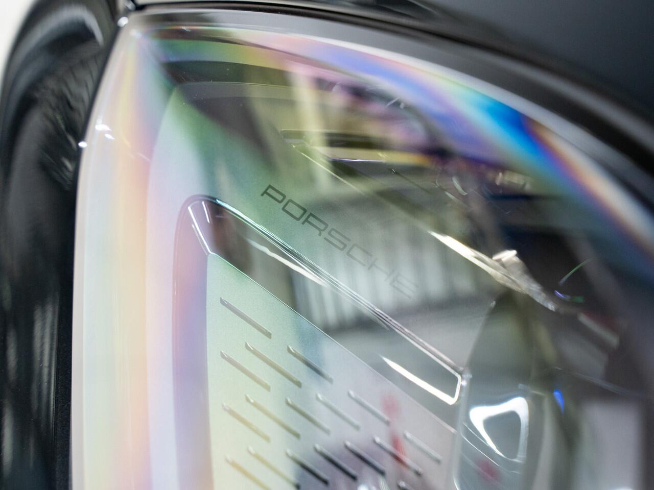 'PORSCHE' logo gespoten in hoogglans zwart en modelaanduiding gespoten in hoogglans zwart