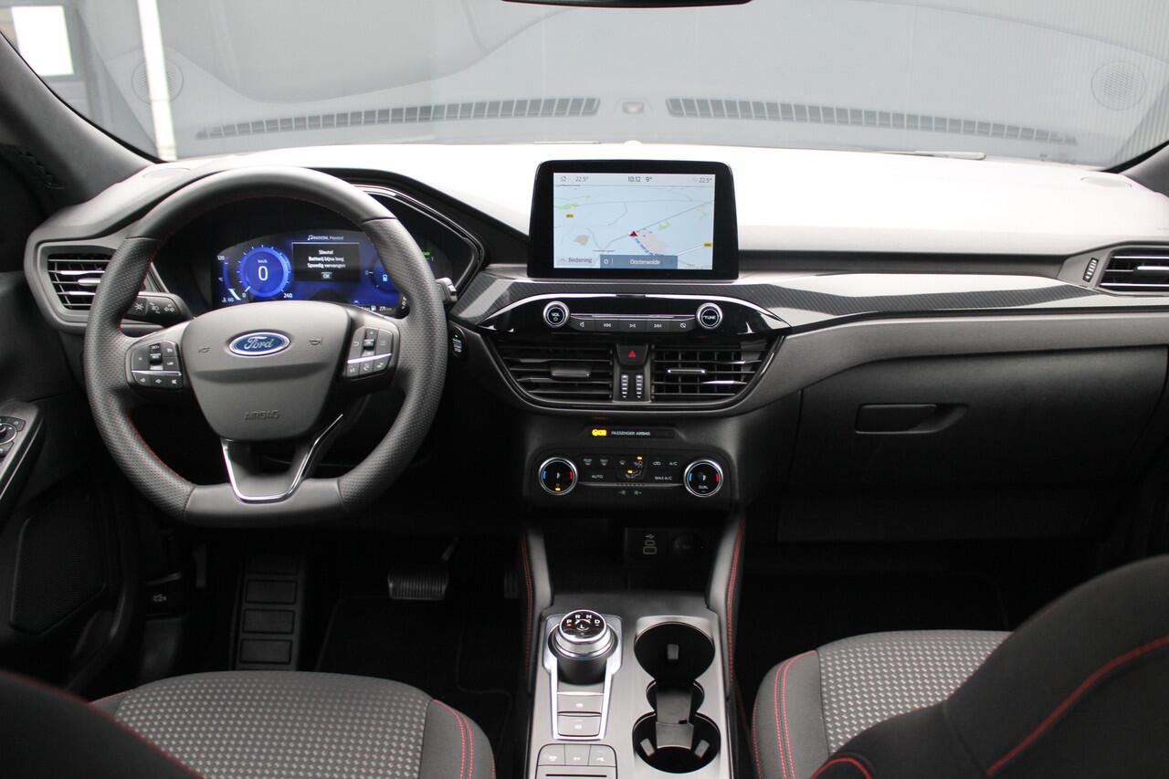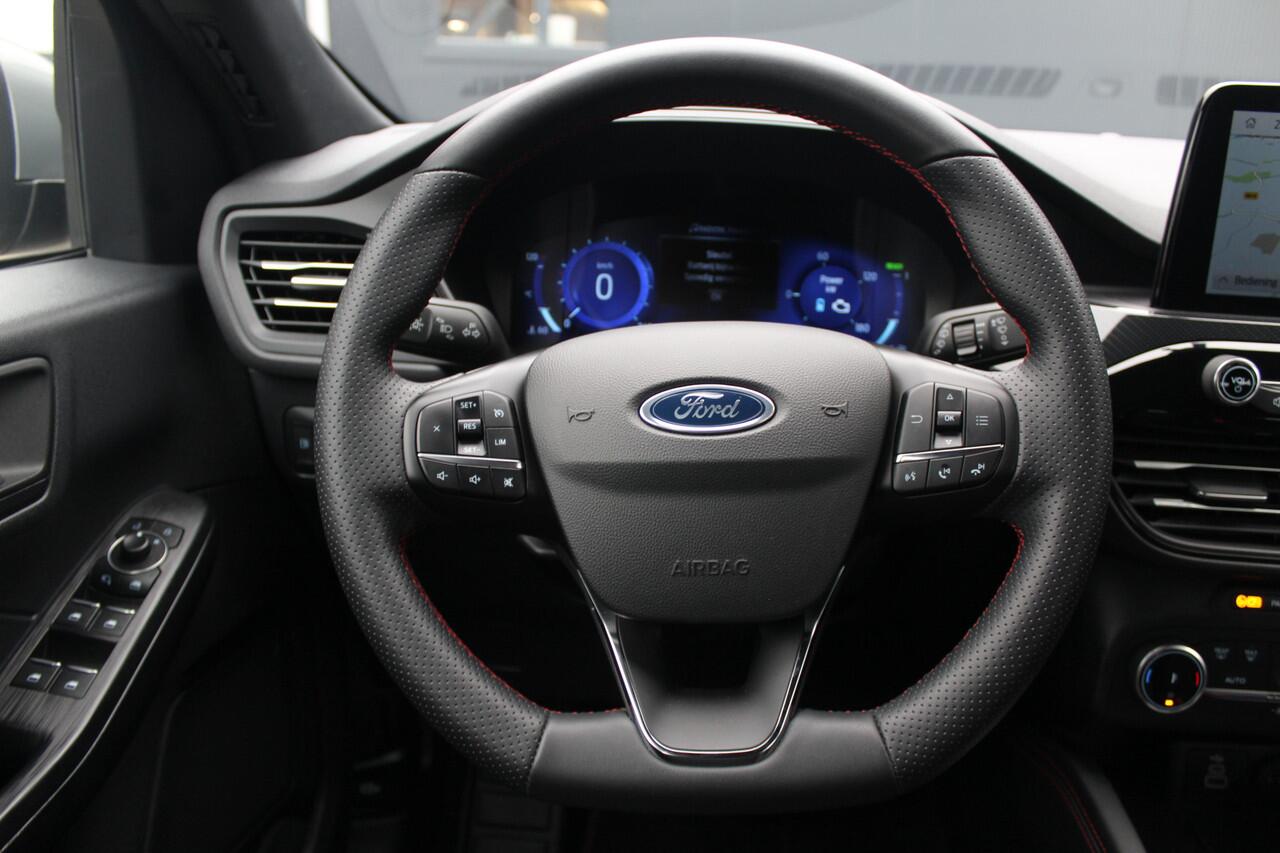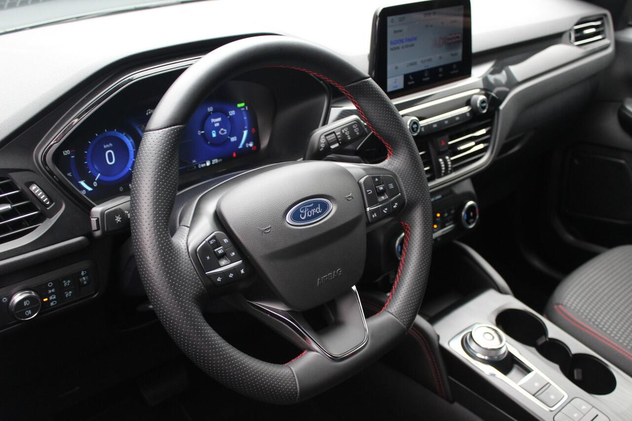 dankzij de DAB-radio klinkt het altijd geweldig. Intussen bedient u het audiosysteem en het full map navigatiesysteem met de knoppen op het stuur of met uw stem. De sensoren van de achteropkomend verkeer waarschuwing registreren wat er gebeurt in de dode hoeken en achter u. U krijgt meteen een waarschuwing als u een achterligger over het hoofd ziet. De Ford is standaard voorzien van: dual zone automatische airconditioning