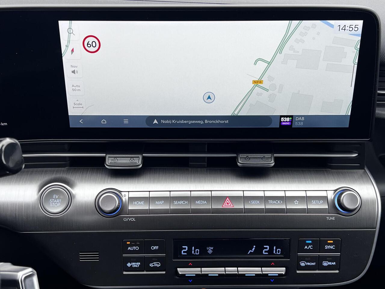 Technologisch is deze Kona volledig up-to-date met navigatie via Bluelink full map