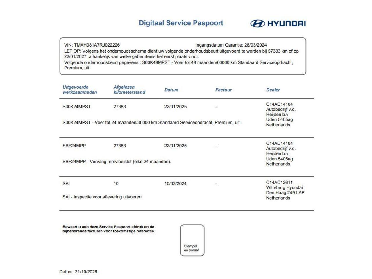 EU verantwoordelijke: Hyundai Motor Netherlands B.V. Postbus 281 2170 AG Sassenheim