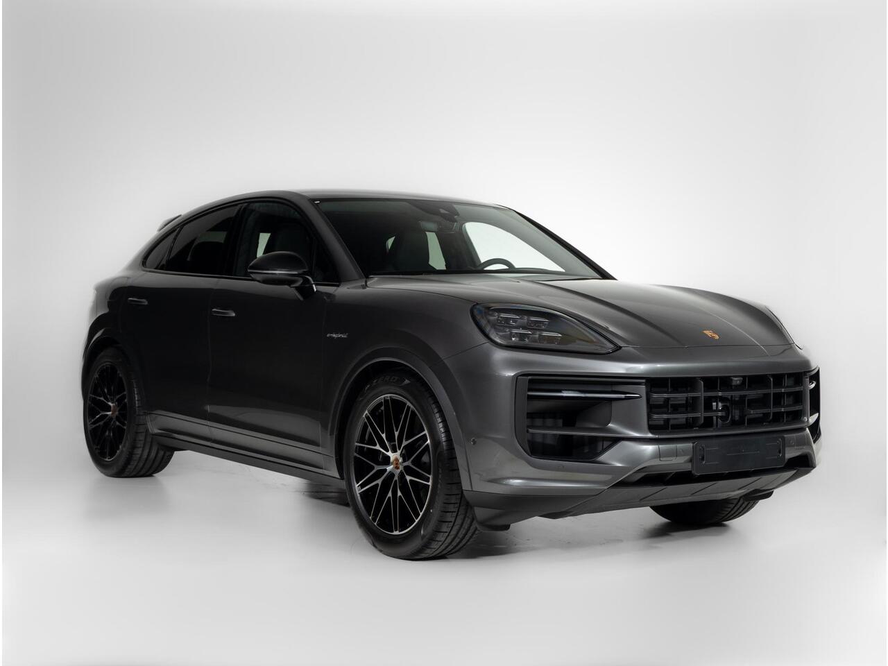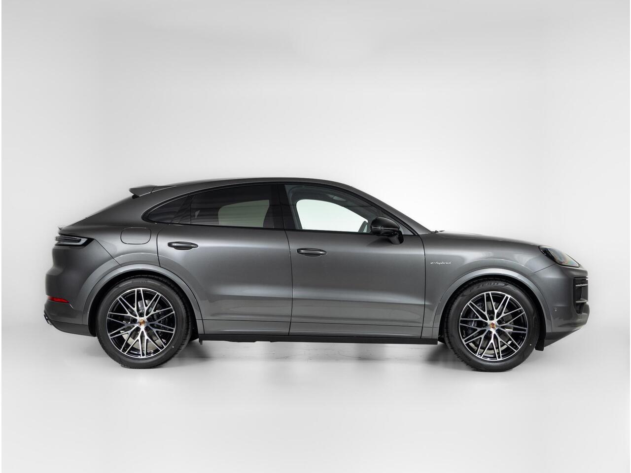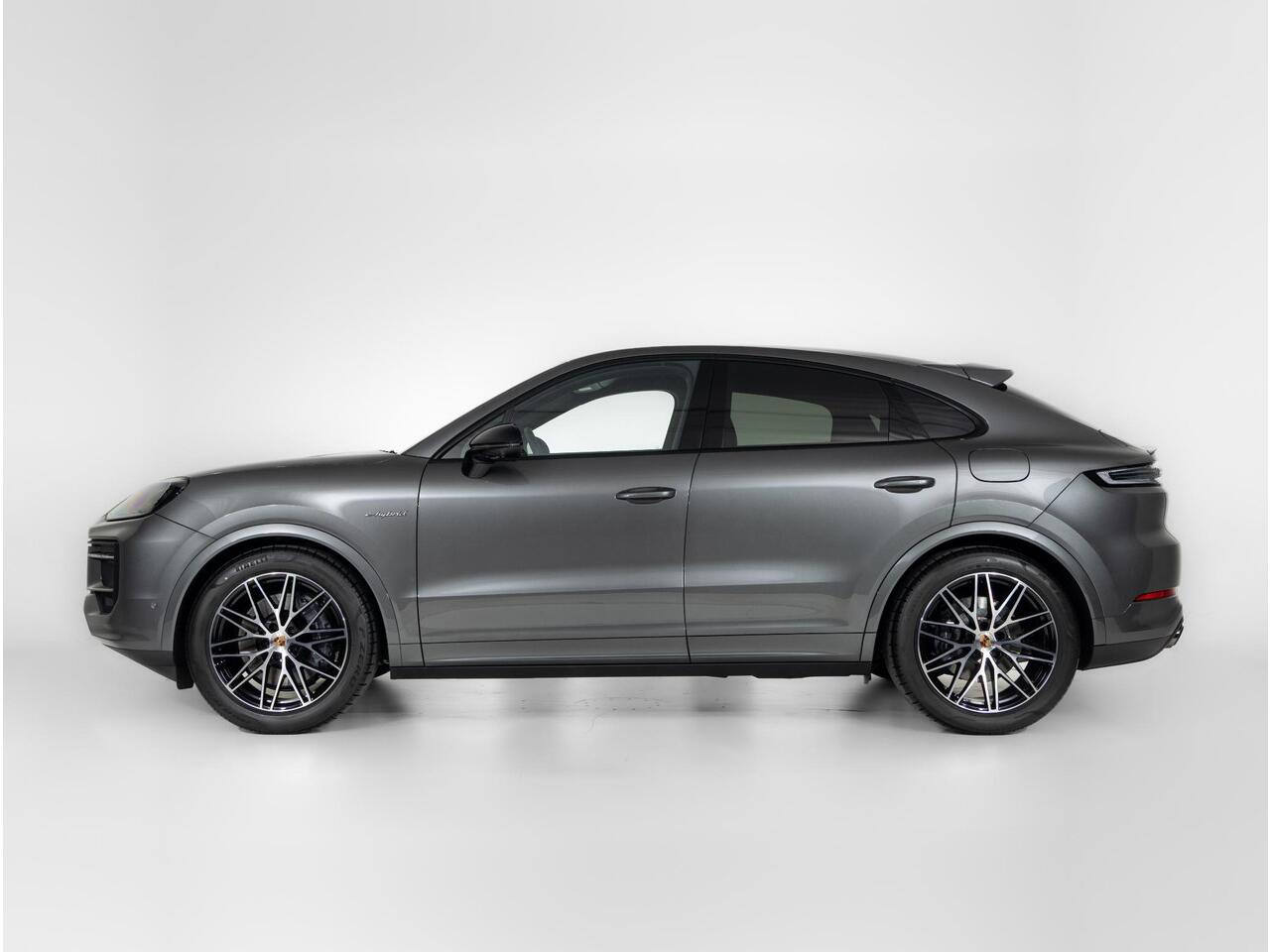 Deze Porsche Cayenne E-Hybrid Coupé Black Edition in de kleur Kwartsiet Grijs metallic is nog nieuw en ongeregistreerd. De Porsche onderscheidt zich onder andere door unieke opties