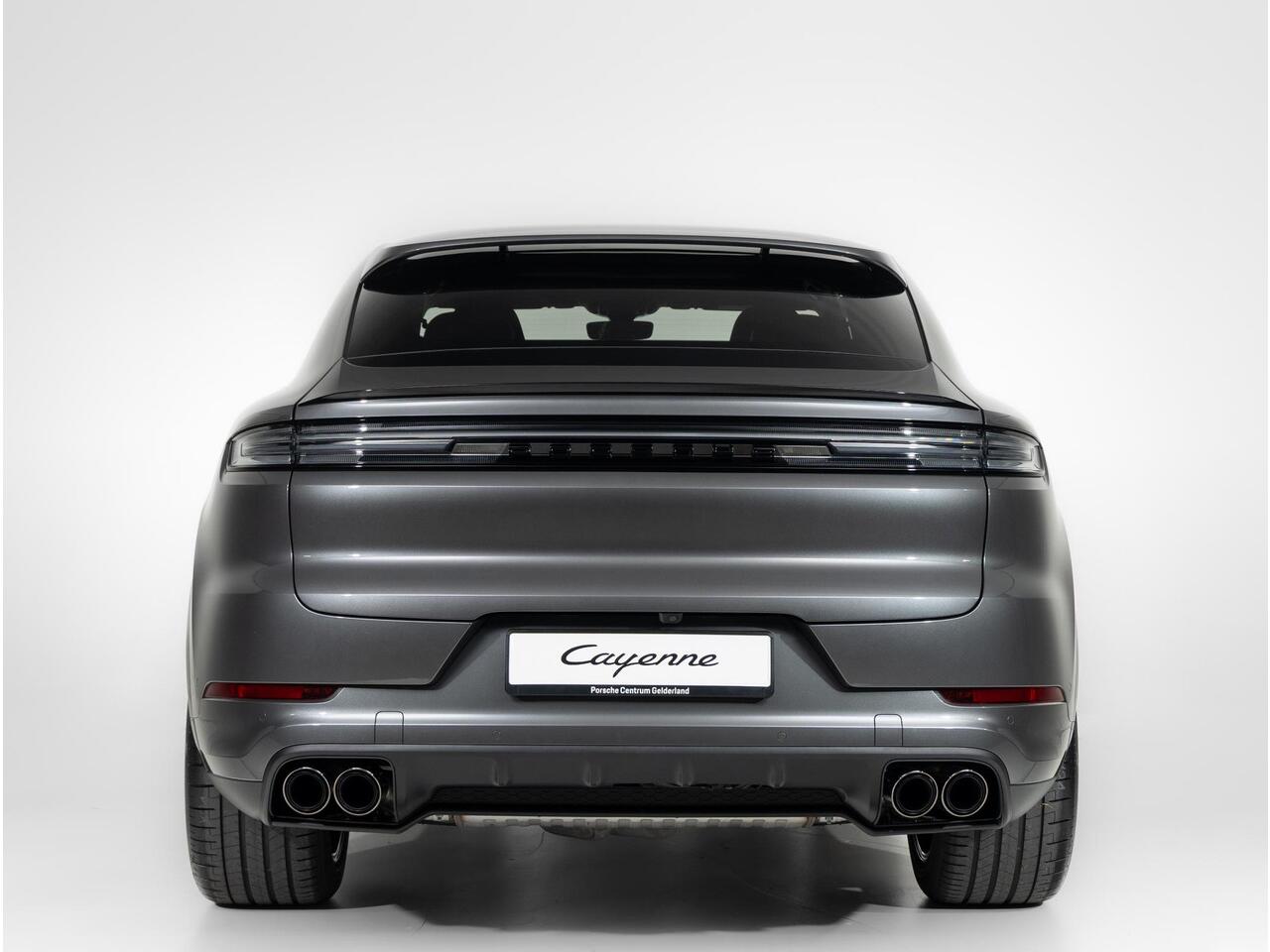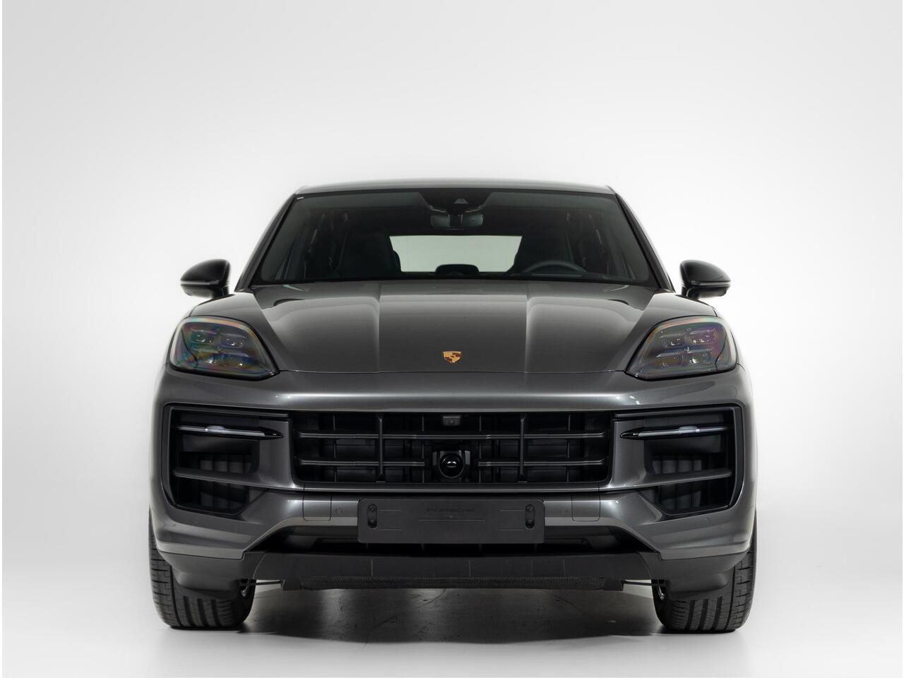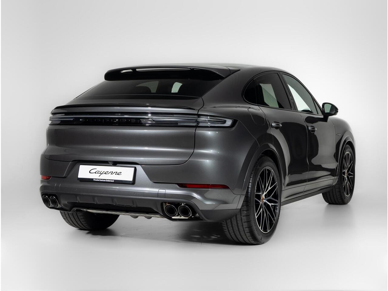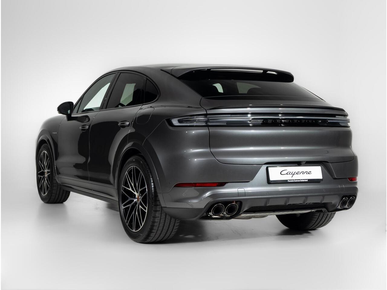 Deze Porsche Cayenne E-Hybrid Coupé Black Edition in de kleur Kwartsiet Grijs metallic is nog nieuw en ongeregistreerd. De Porsche onderscheidt zich onder andere door unieke opties
