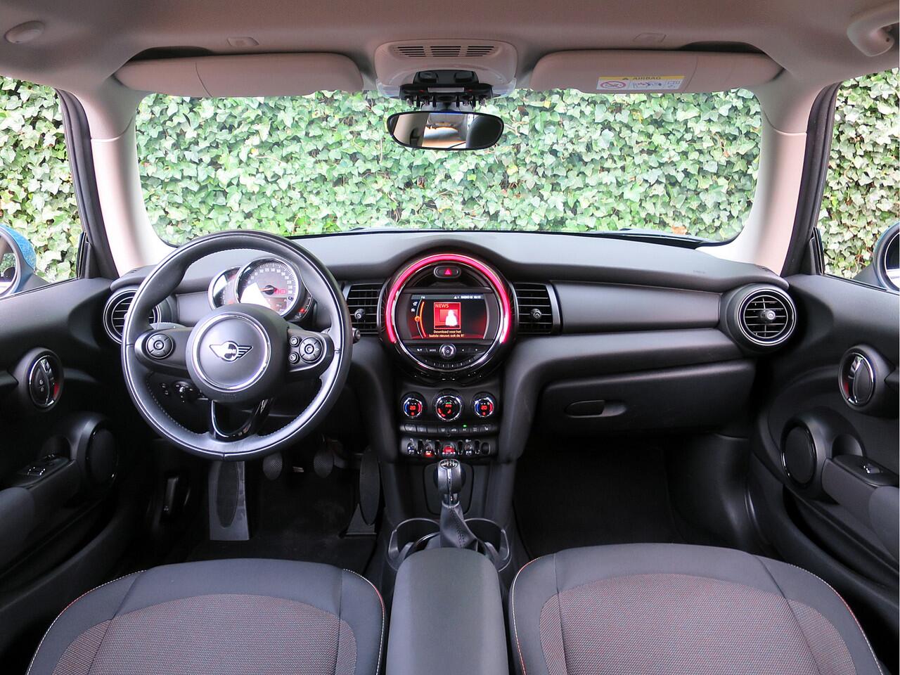 Leuke vrolijke Mini Cooper 1.5 One Pepper F56 LCI (facelift!) in de kleur Electric Blue II metallic met een zwarte 16" Victory Spoke velgen en een stoffen Firework Carbon Black interieur met bijpassende Carbon Black colourline. Deze Mini is o.a. uitgerust met LED kop- en mistlampen