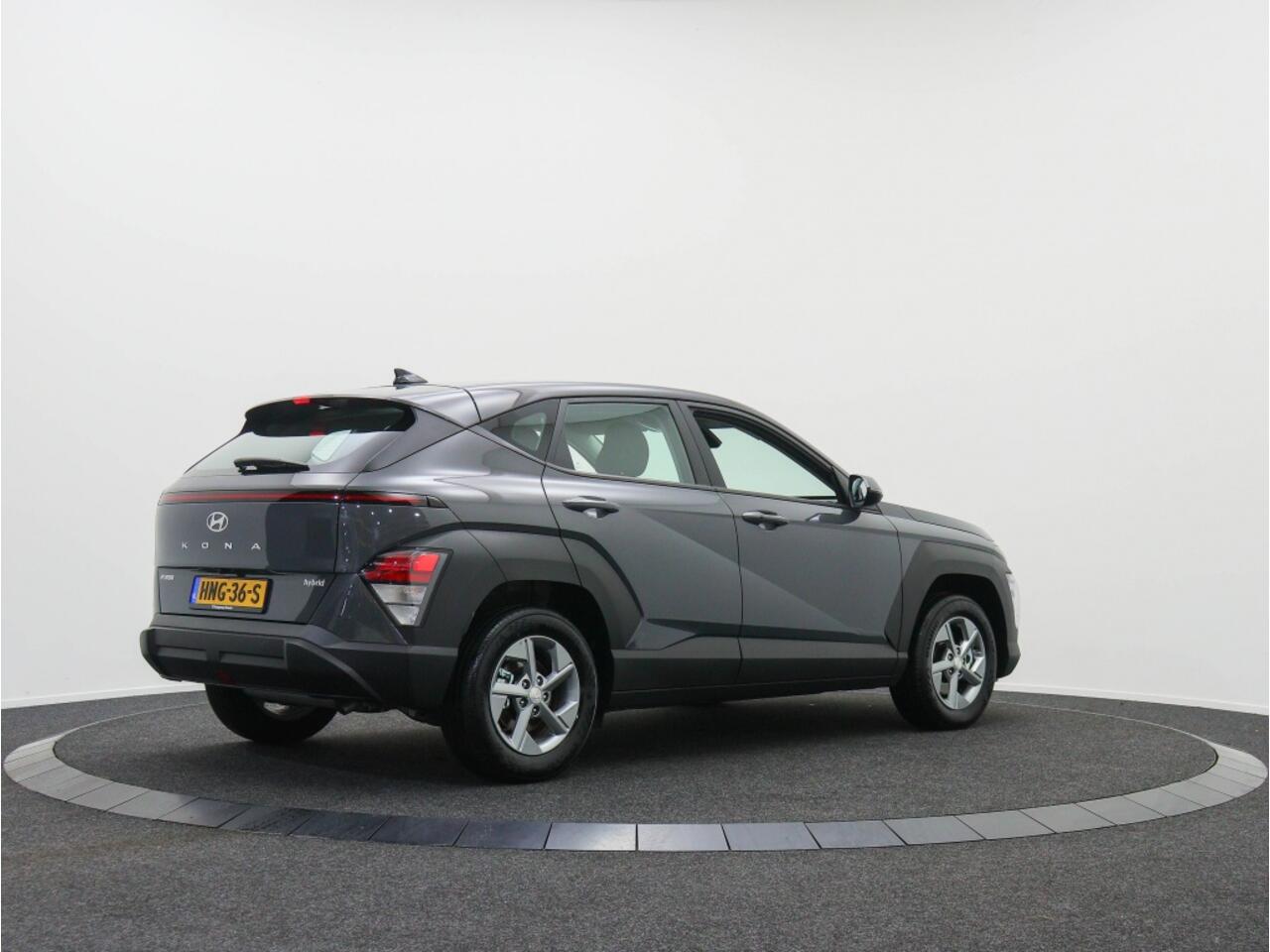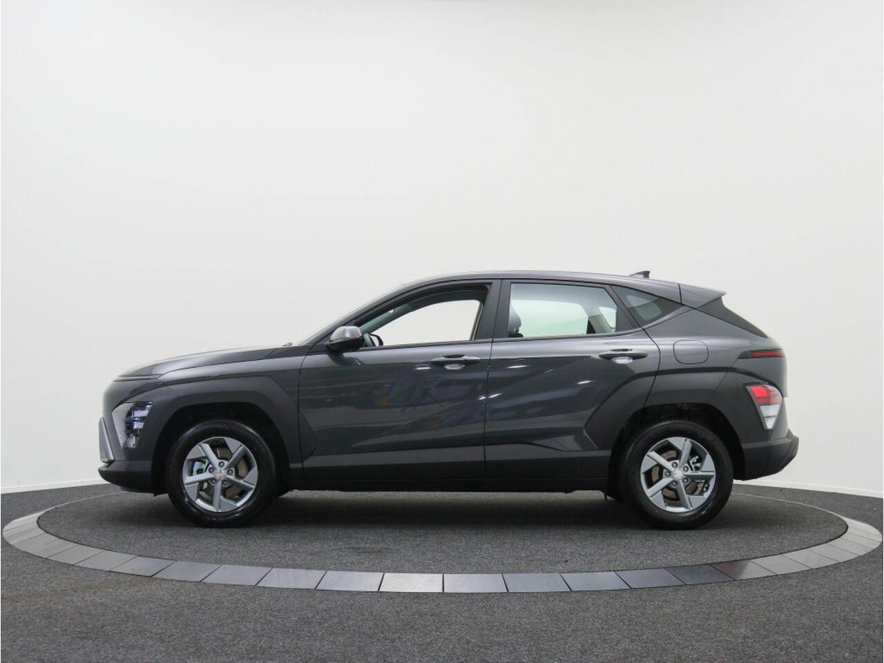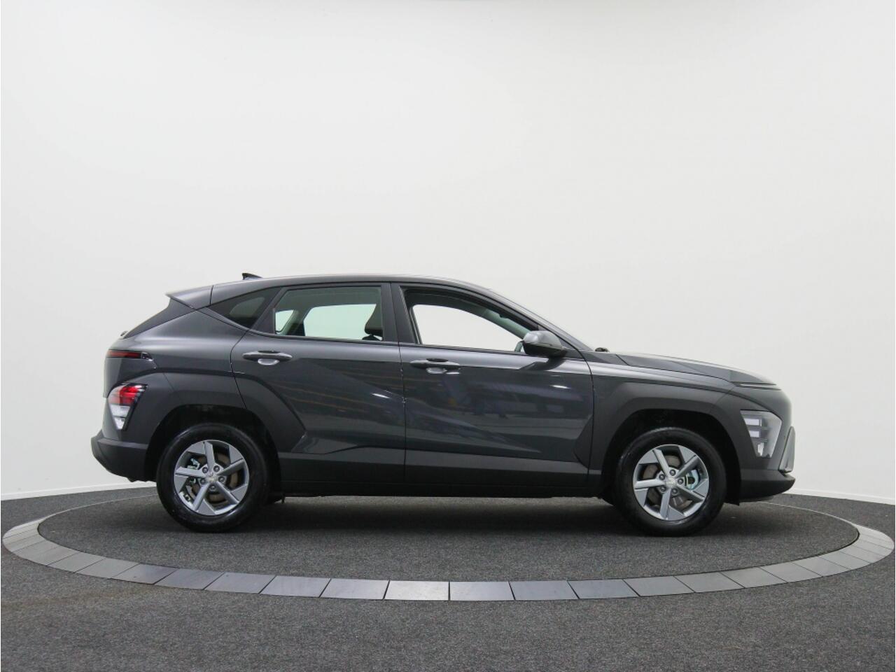 De stijlvolle grijze kleur van de carrosserie in combinatie met de metallic lak zorgt ervoor dat deze Hyundai Kona er niet alleen elegant uitziet
