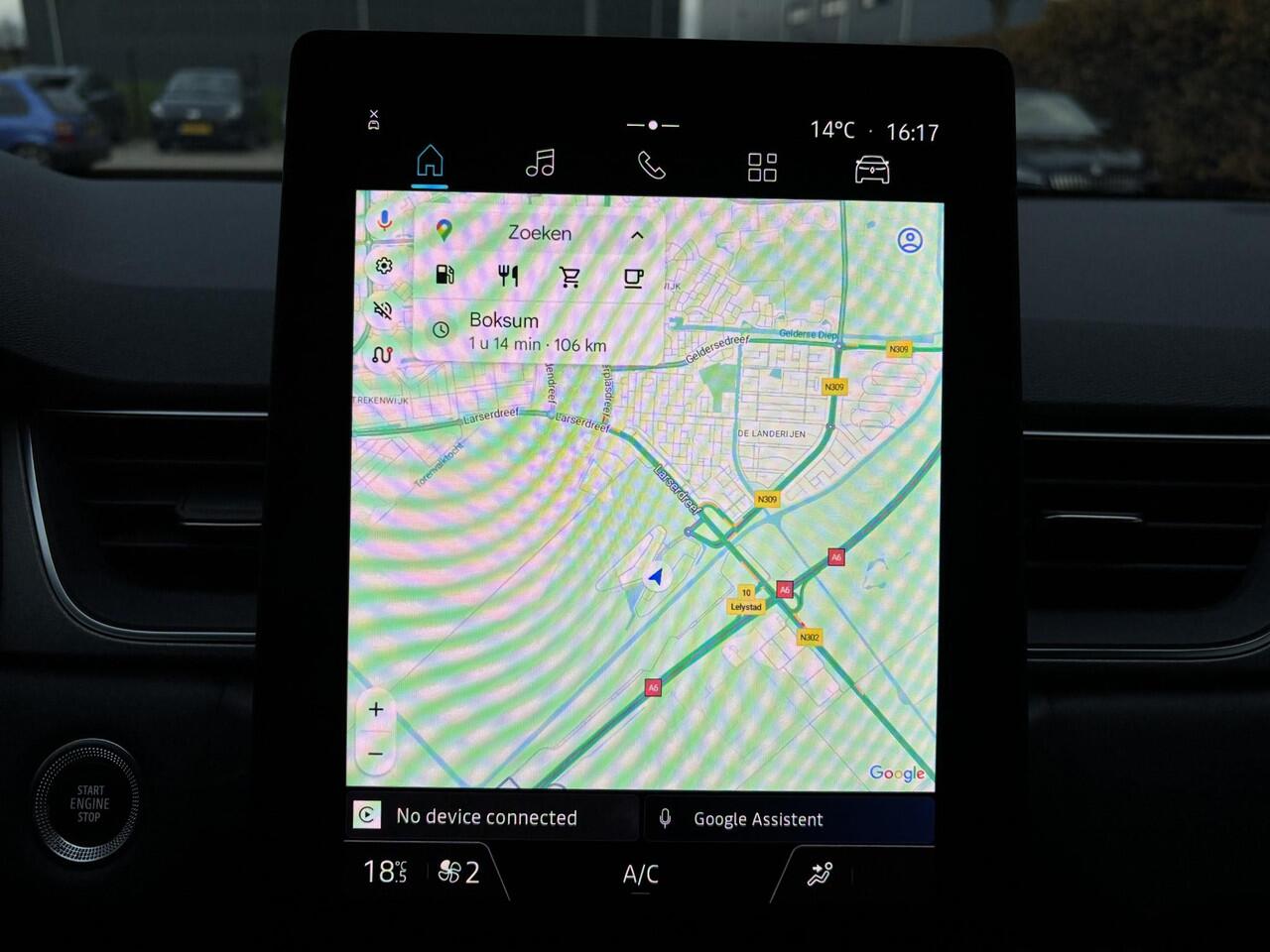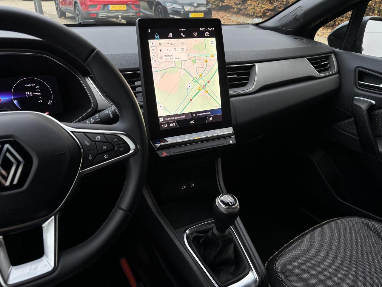 in beeld en geluid. Spraaksturing is onderdeel van de uitrusting van deze auto. Met uw stem kunt u de belangrijkste voertuigfuncties bedienen. Het navigatiesysteem zorgt ervoor dat u altijd de juiste en snelste route vindt. Electronic climate control verwarmt of koelt het interieur met een druk op de knop. Gedoe met kabels en stekkers in de sigarettenaansteker is voorbij. De aanwezige draadloze oplaadmogelijkheid voor telefoons zorgt voor wireless recharging van uw smartphone. Deze Renault is voorzien van DAB ontvangst