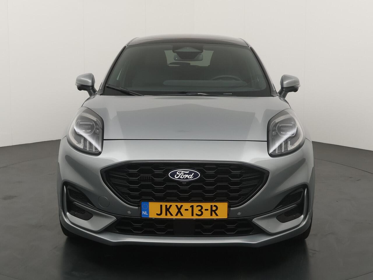Maak kennis met de Ford Puma. Fords compacte cross-over SUV. Compact van buiten en ruim van binnen. De sportieve lijnen en de aflopende daklijn laten zien dat de Puma een sportieve auto is. Door de hoge zit is het instappen erg gemakkelijk. Wist u dat de kofferbak van de Puma groter is dan de bagageruimte van de Ford Focus? Daarnaast is deze Puma voorzien van hybride techniek. De mild-hybride technologie omvat een elektromotor die helpt de efficiency te verbeteren.