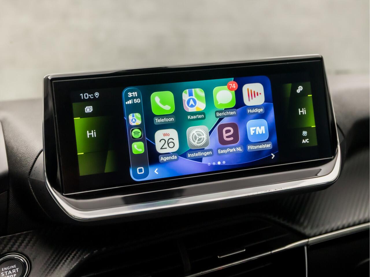panoramisch zicht op de omgeving. Dankzij Connected Services houdt u de auto nog gemakkelijker in topconditie. Elke dag. Onderweg kunt u veilig genieten van het audio-installatiesysteem met DAB-radio en het in dashboard opgenomen navigatiesysteem. Want in deze Peugeot bedient u ze vanaf het stuurwiel of met uw stem. In een auto als deze kunt u niet zonder automatische airconditioning