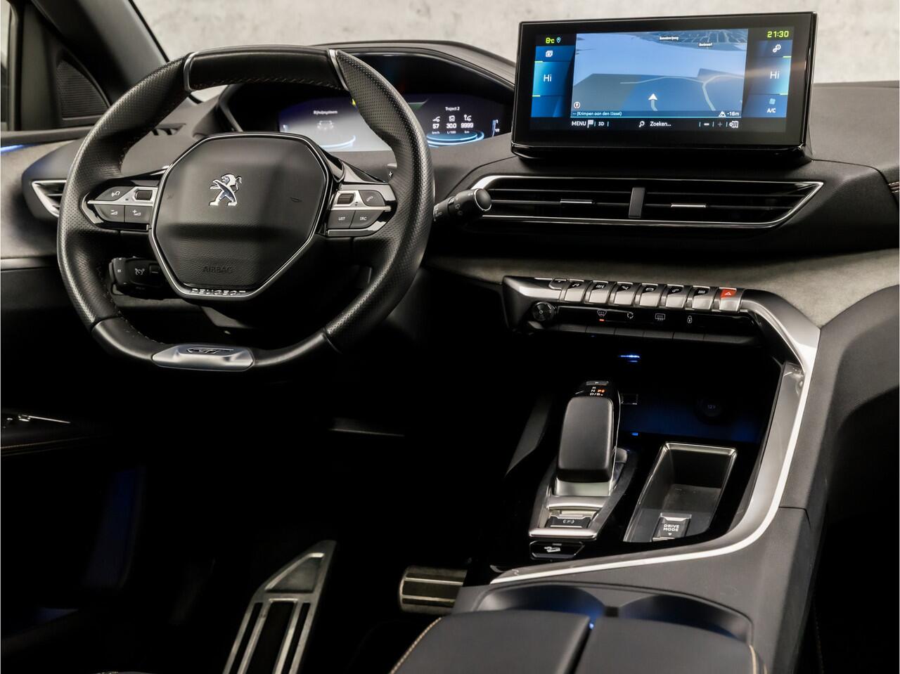 ook als u rij- en routeinformatie wilt aflezen. De head-up display projecteert de gegevens op de vooruit en u kunt gewoon voor u blijven kijken. In het instrumentarium kunt u bovendien de verkeersborden zien die u onderweg tegenkomt. Zo helpt deze Peugeot u om veiliger te rijden. Het Lane-keeping systeem garandeert dat u zich niet onverhoeds buiten de lijnen van de rijstrook begeeft. De veiligheid van deze auto wordt verder verhoogd door dodehoekdetectie