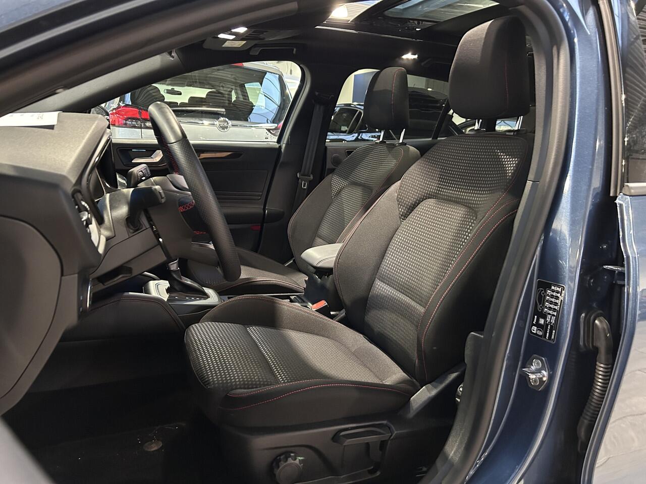 sideskirts en lichtmetalen velgen is meteen te zien dat dit geen standaard Focus is. Het onderstel is ook aangepast en 1 cm verlaagd voor een nog betere wegligging. Net zoals de meer standaardauto's biedt deze Focus een zee van ruimte. Op de achterbank is genoeg ruimte om als volwassene achter jezelf te kunnen zitten. De bekleding is uitgevoerd in zwart stof met prachtige rode stiksels. D