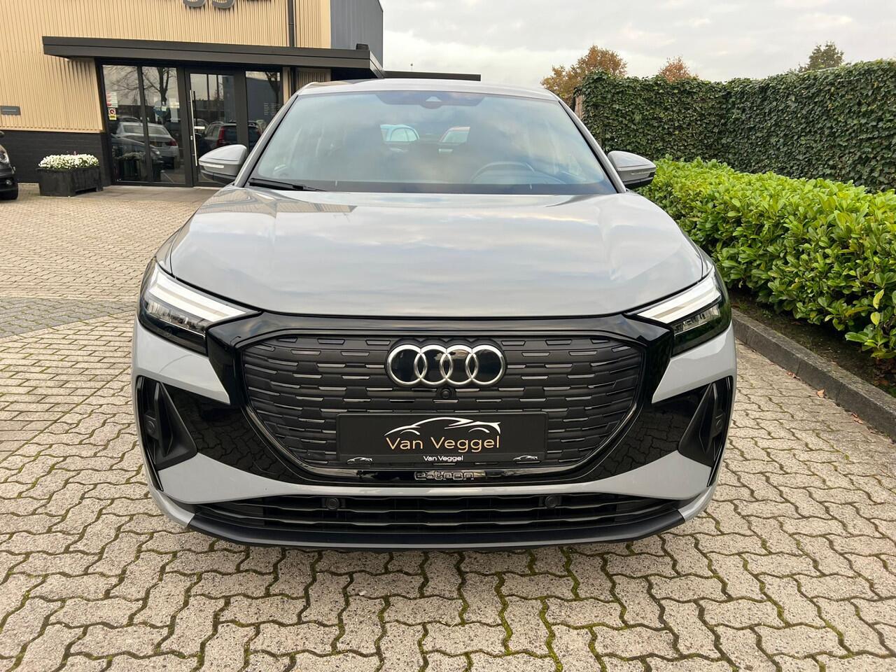 valt enorm mee. Een krachtige motor geeft deze auto zijn sportieve prestaties. Bestuurder en bijrijder krijgen een warm welkom: deze Audi Q4 Sportback e-tron is voorzien van verwarmbare voorstoelen. Chauffeur en bijrijder zitten stabiel in de scherpe bochten door de sportstoelen. De elektrisch bedienbare achterklep opent met een druk op de knop. De koplampen met matrix LED-verlichting zijn het hoogst haalbare op het gebied van autoverlichting. Tot de uitrusting van deze Audi behoren ook 19 inch lichtmetalen velgen