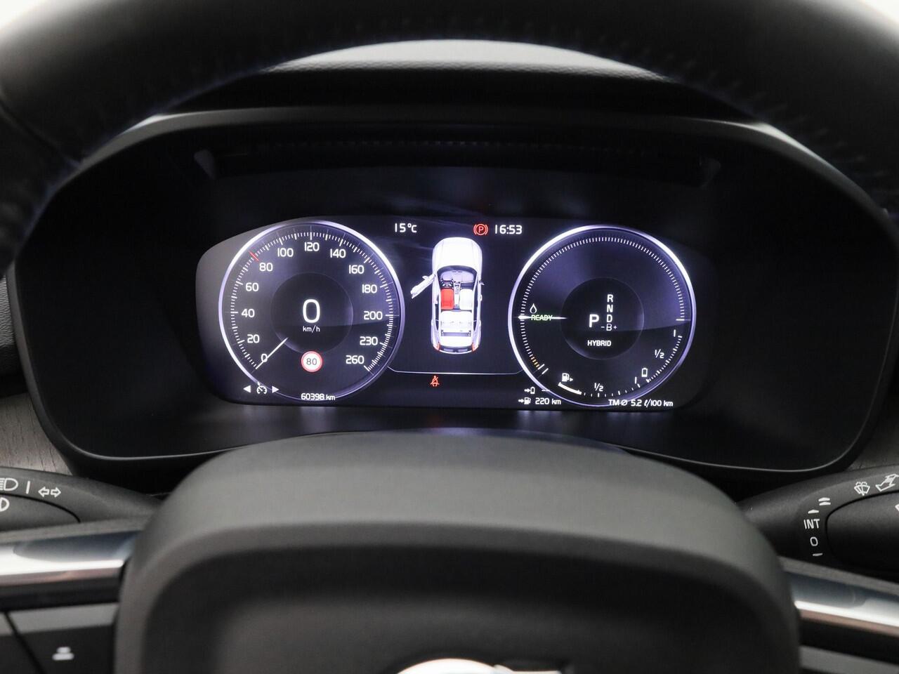 beschikt hij over diverse veiligheidssystemen. In het instrumentarium laat de verkeersborddetectie de actuele verkeersborden zien. Het Lane-keeping systeem zorgt voor een automatisch constante positie binnen de rijstrook. Afdwalen is uitgesloten. Voertuigen of personen buiten uw zicht kunnen gevaar opleveren. De actieve dodehoekdetectie waarschuwt direct. Bovenop deze veiligheidsfeatures heeft deze Volvo bovendien forward collision warning system