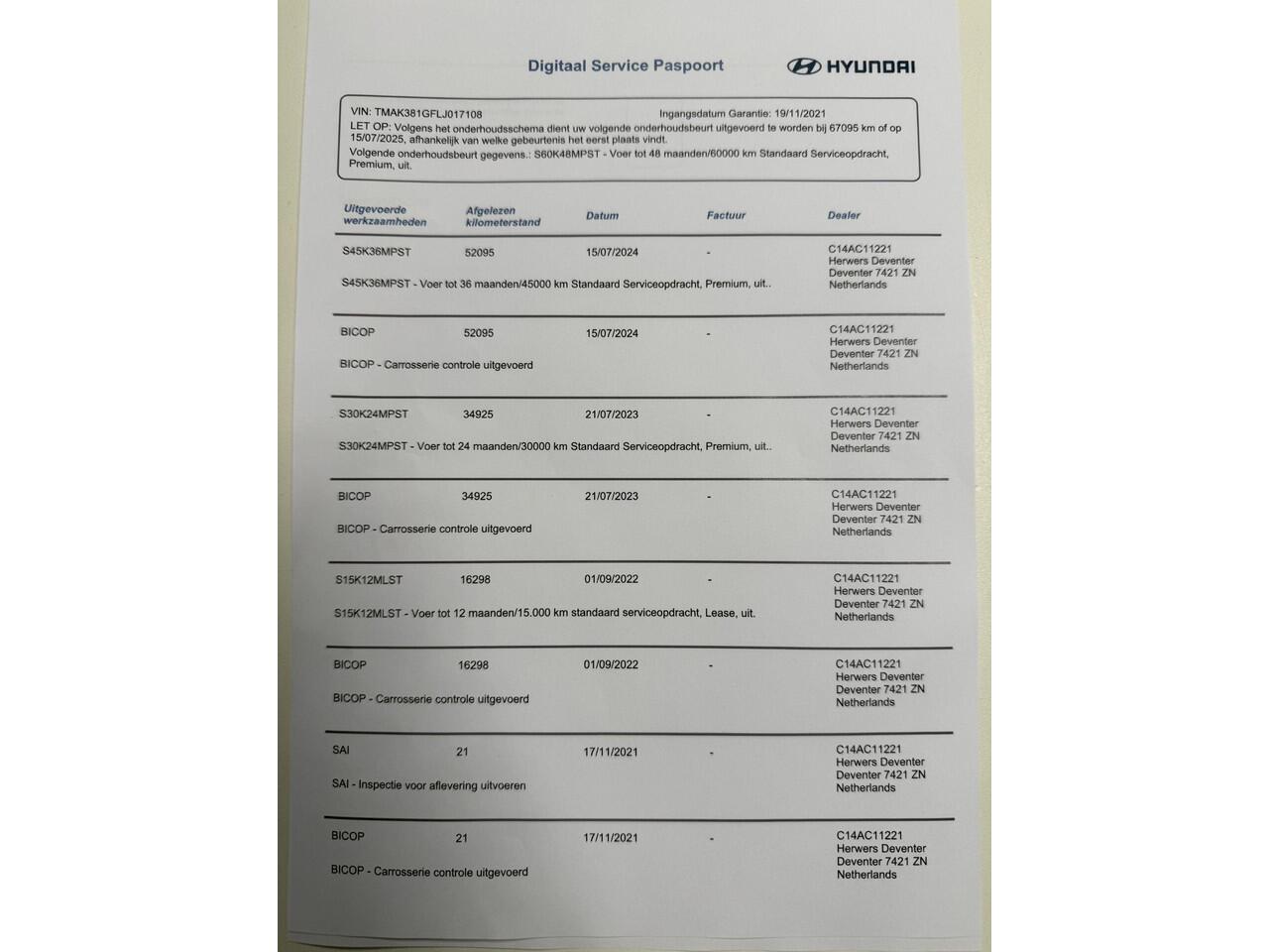Vervangen slijtagedelen indien binnen 12 maand of 15000 km benodigd Productveiligheid EU verantwoordelijke: Hyundai Motor Netherlands B.V. Postbus 281 2170 AG Sassenheim