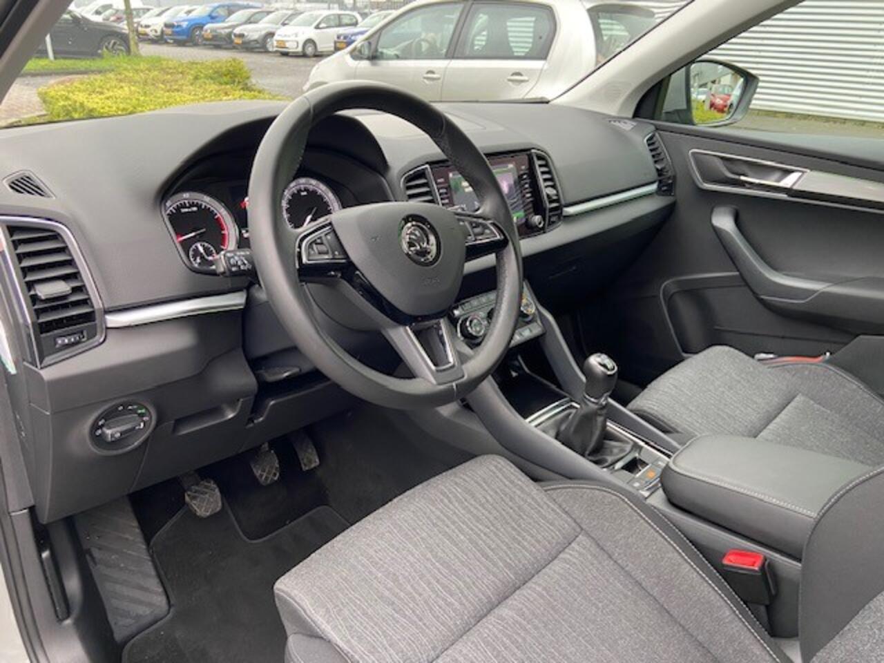 deze ŠKODA Karoq. De aandrijving komt voor rekening van een benzinemotor en een handgeschakelde zesversnellingsbak. Je wordt in deze auto ook getrakteerd op 17 inch lichtmetalen velgen